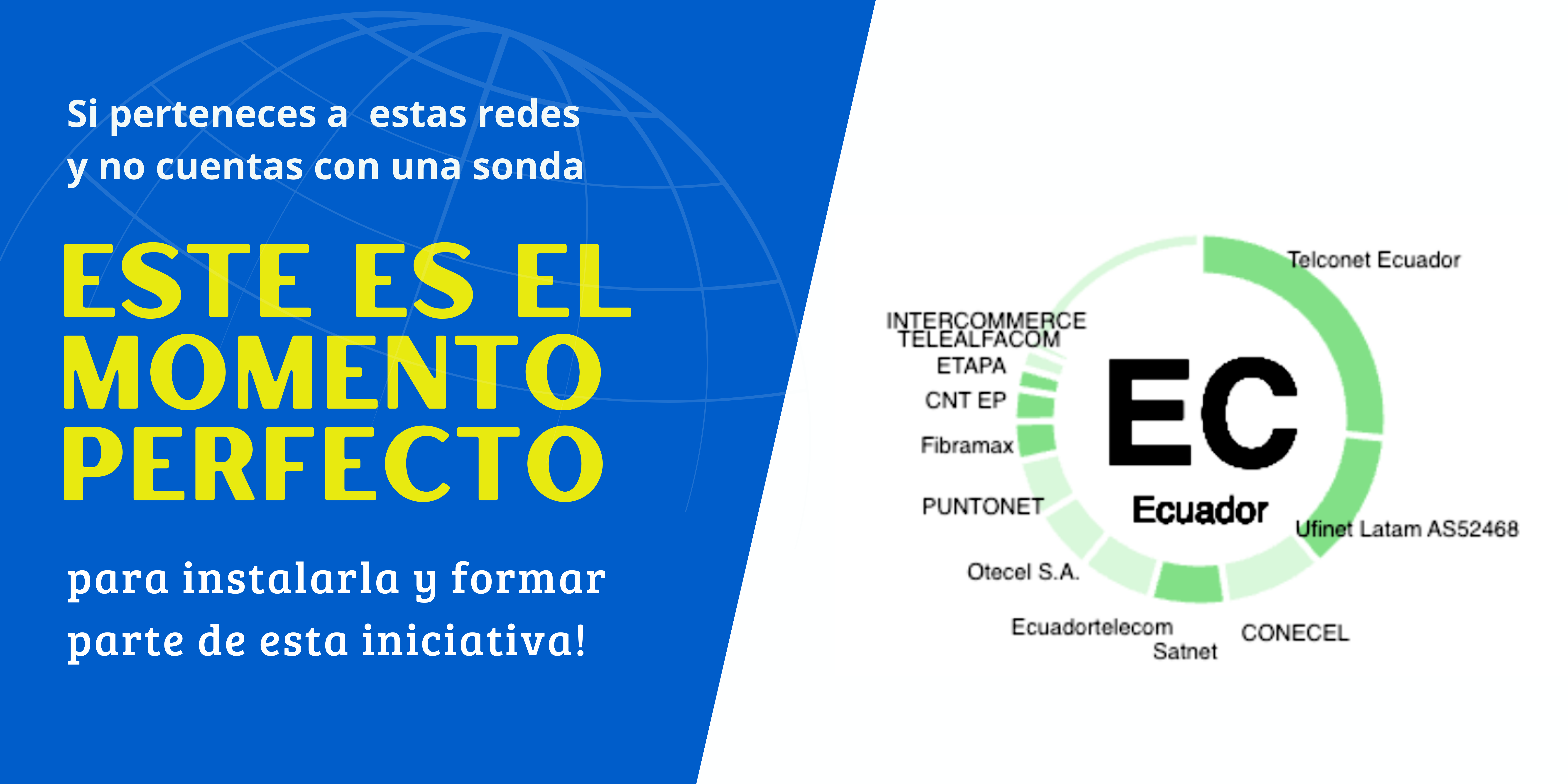 En la siguiente imagen se muestran los principales ISP del Ecuador y es a quienes queremos invitar a instalar una sonda y colaborar para que el ecosistema digital del Ecuador se fortalezca y sea más resiliente.